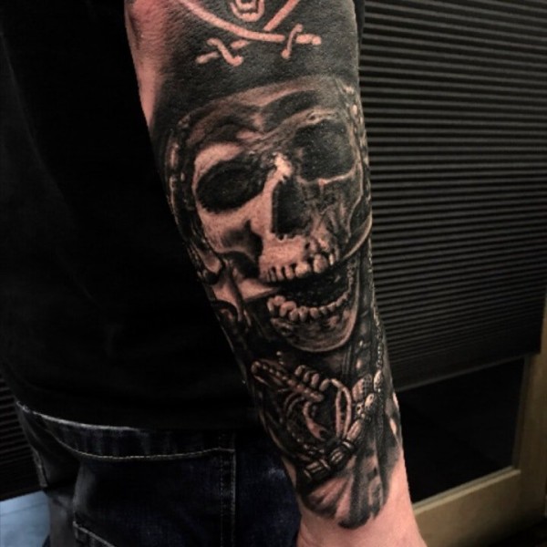 海盗纹身图案 黑灰色调的海盗纹身图案
