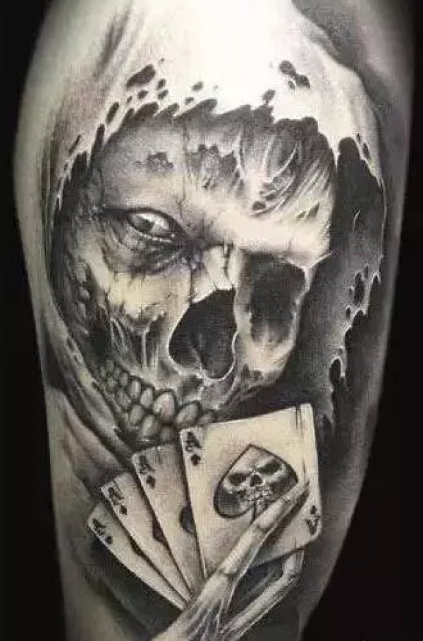 暗黑骷髅头纹身 9张包臂的暗黑色骷髅纹身图片