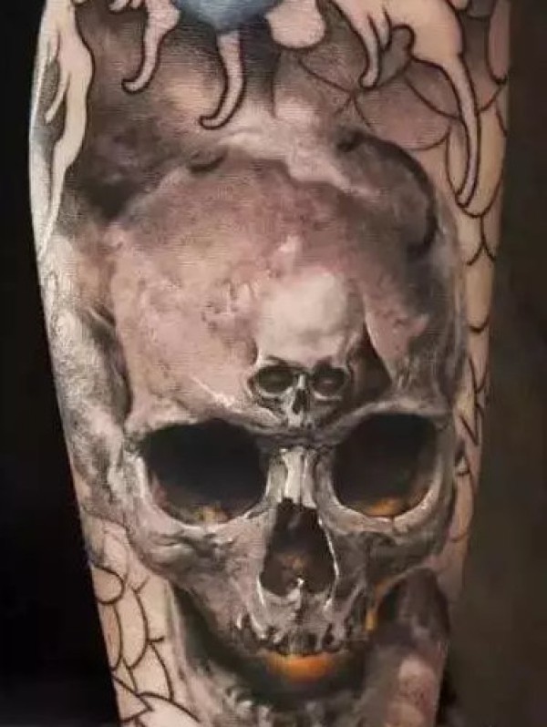 暗黑骷髅头纹身 9张包臂的暗黑色骷髅纹身图片