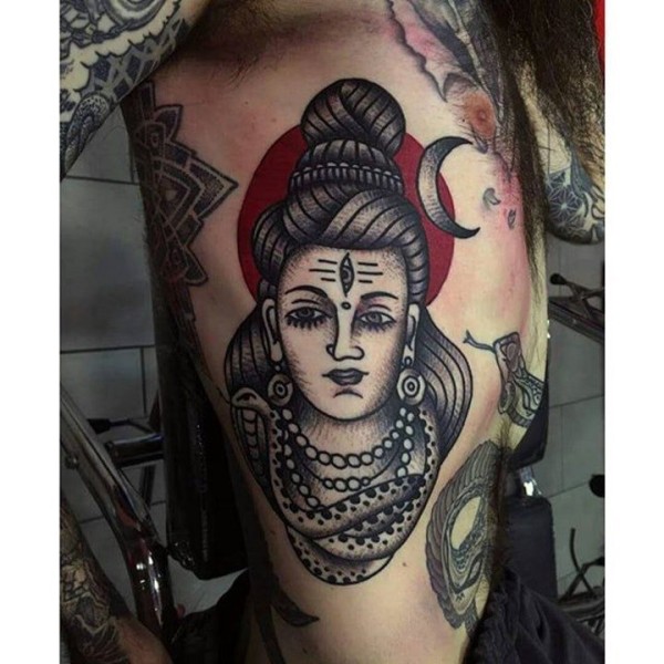 印度宗教纹身图案 毁灭之神和舞神之称的三相神之一湿婆神印度纹身图案