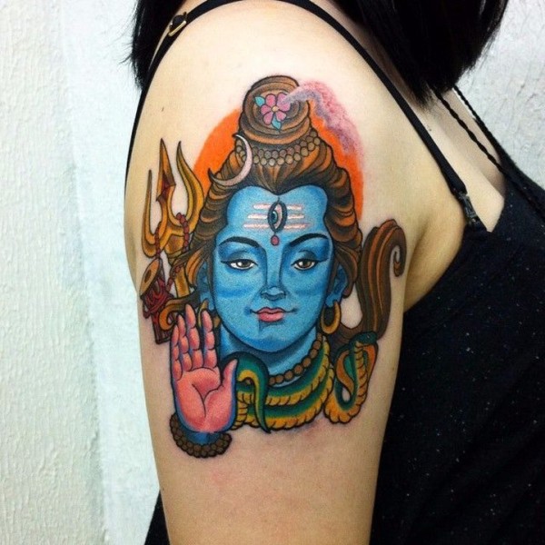 印度宗教纹身图案 毁灭之神和舞神之称的三相神之一湿婆神印度纹身图案