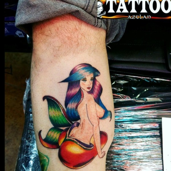 纹身美人鱼 漂亮的卡通人物美人鱼纹身图案