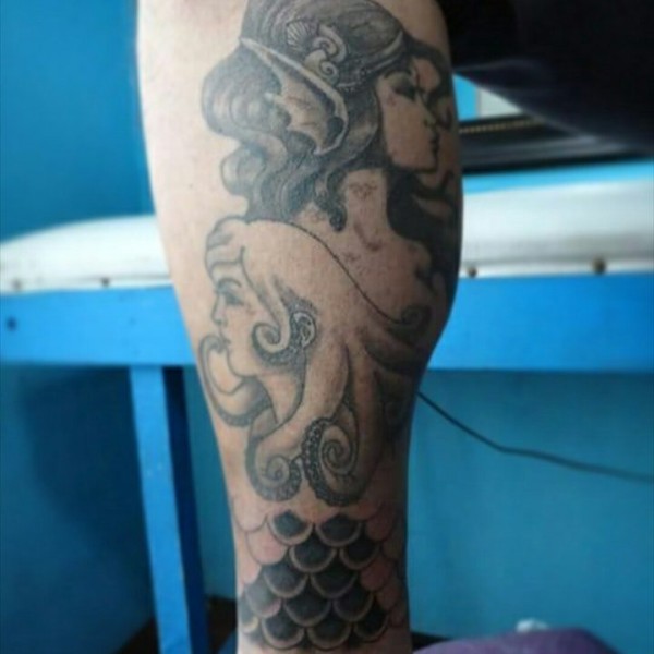 黑色的一组小美人鱼相关纹身作品图案欣赏