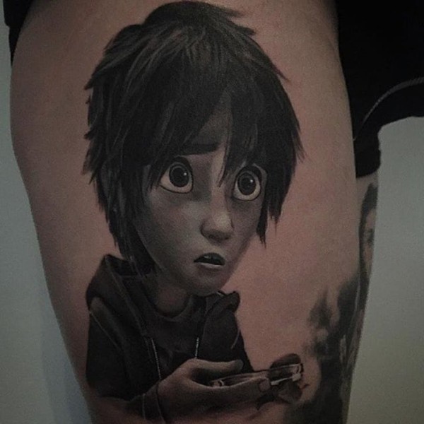 动漫纹身图案 黑灰纹身动物和人物的迪斯尼动画片动漫纹身图案