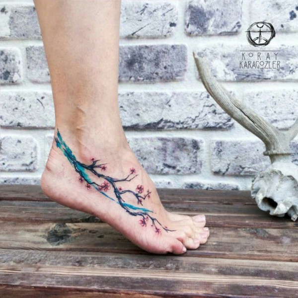脚背小清新樱花纹身图案优雅高贵