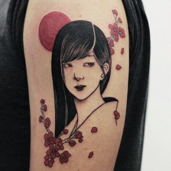 樱花 纹身图案 花色迷人的樱花纹身图案