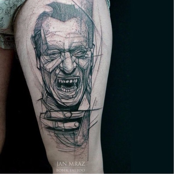 人物肖像纹身 面部表情丰富而又形象的人物肖像纹身图案