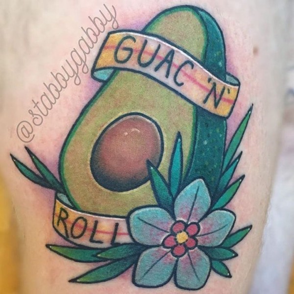 食物纹身 点刺技艺与school风格结合的牛油果纹身图案