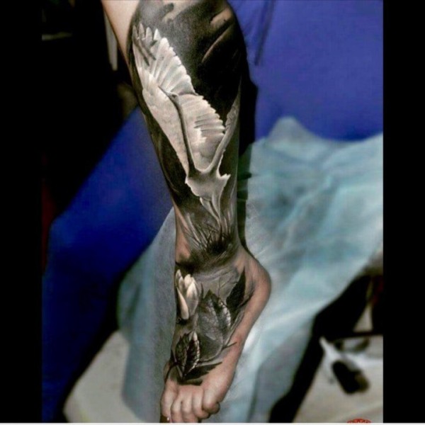 花腿纹身--一组大黑腿纹身图案作品欣赏