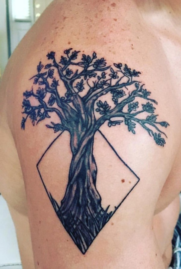 森林树木纹身图案_一组手臂上黑灰树木森林纹身图案作品