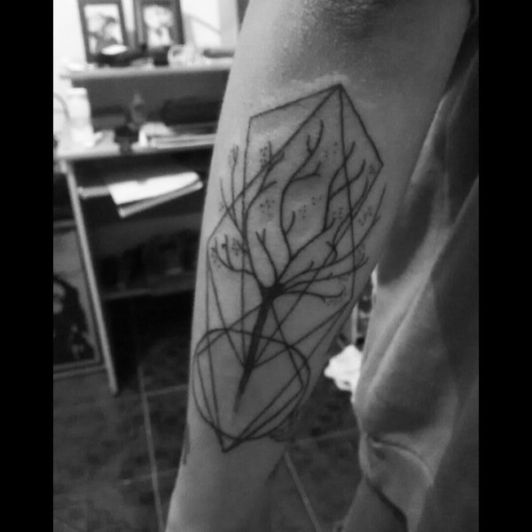 森林树木纹身图案_一组手臂上黑灰树木森林纹身图案作品
