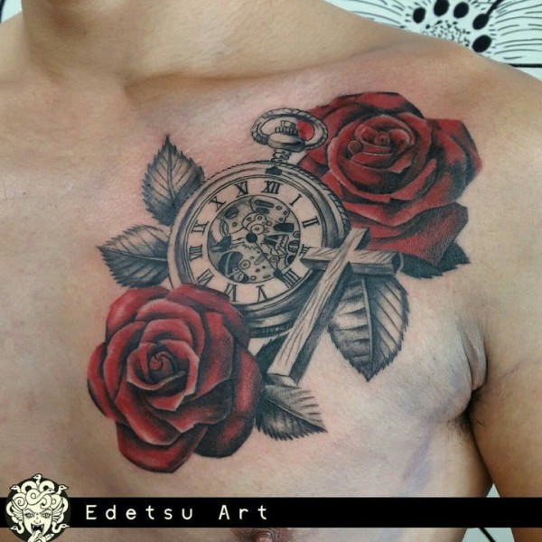 欧美玫瑰纹身 男生手臂上花朵纹身图片