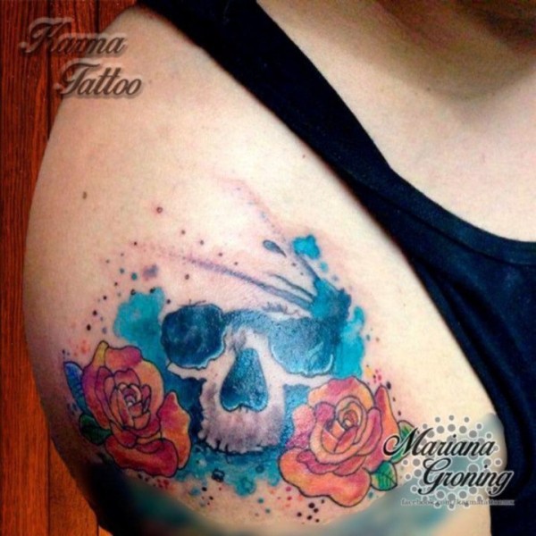 复古骷髅玫瑰肩部纹身_玫瑰花纹身图案大全_纹身图吧