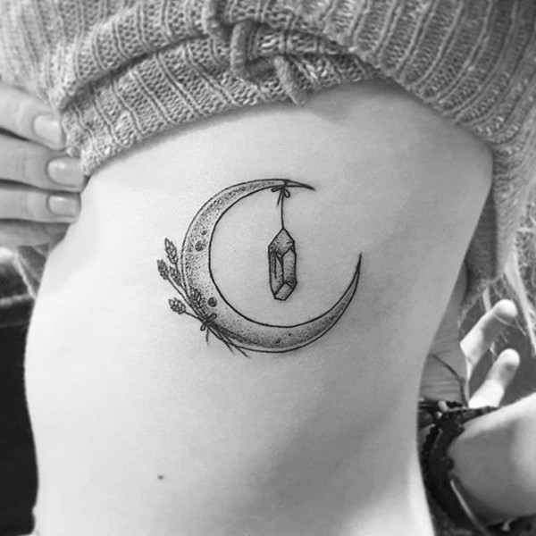 男子右侧肋上的弯月挂着吊坠十字架纹身图片