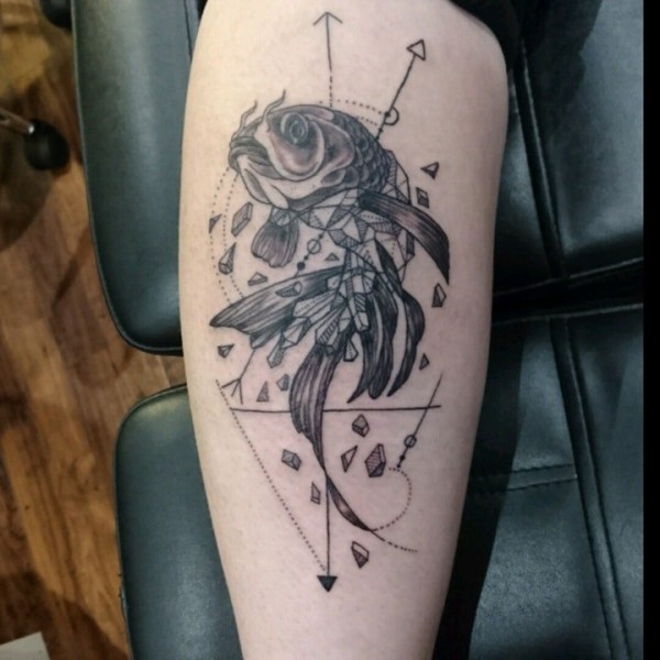 给自己纹身,小腿上纹了一条鲤鱼