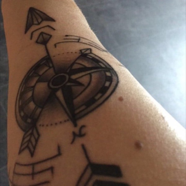 几何元素纹身 男生手臂上指南针和箭矢纹身图片