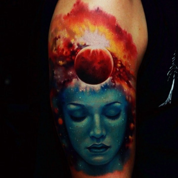 一组炫彩色星空星球宇宙相关的纹身图案作品