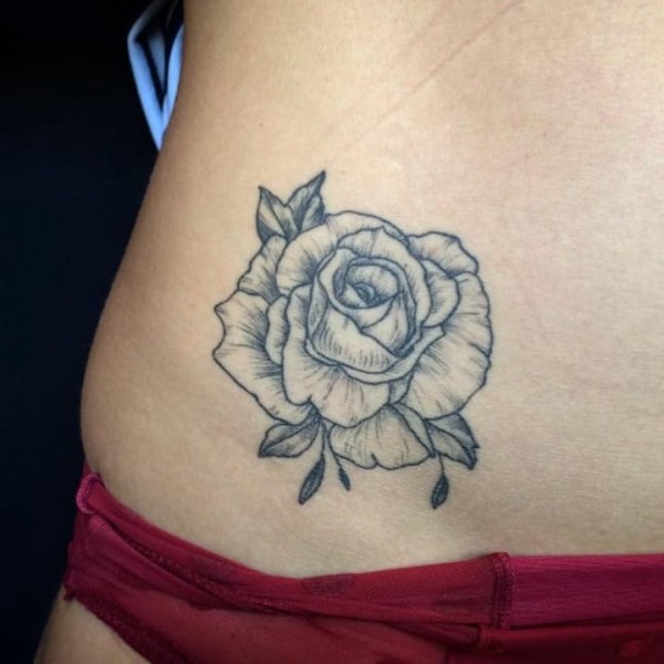 性感花朵纹身--女性大腿侧部性感的花朵纹身