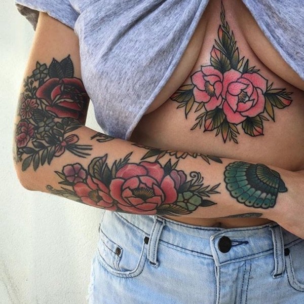 性感花朵纹身--女性大腿侧部性感的花朵纹身