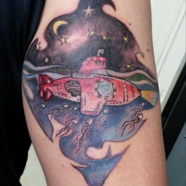 创意纹身图片 多款潜伏在水底的潜艇纹身图案
