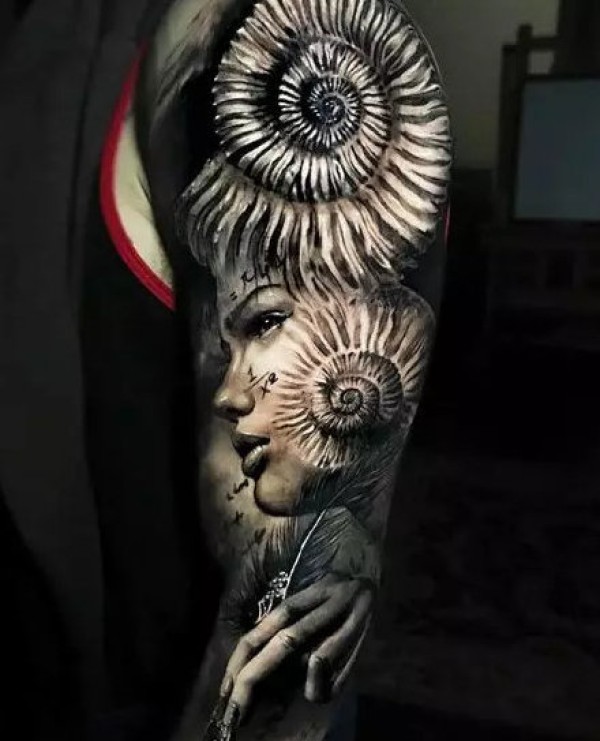 超现实风格的黑灰色漂亮的时尚女士纹身图案来自埃里克