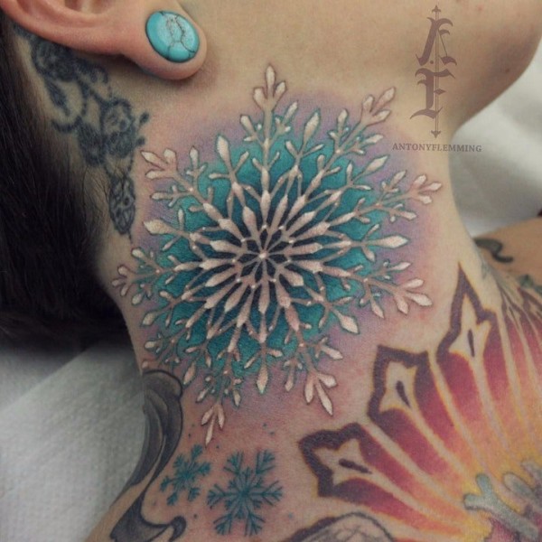 肩背部纯洁的雪花纹身图案大全
