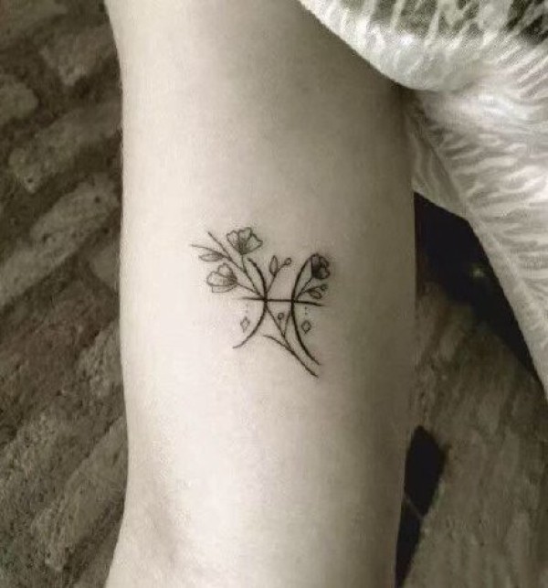 手臂经典潮流的双鱼座与天秤座纹身图案