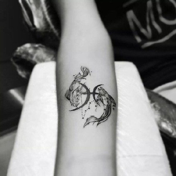 手臂经典潮流的双鱼座与天秤座纹身图案