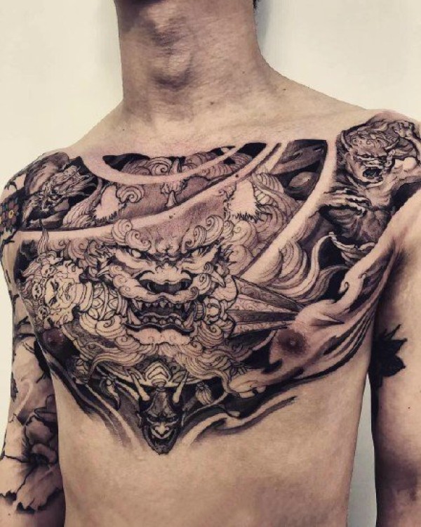 花胸纹身--一组男性霸气的大花胸纹身图案作品欣赏