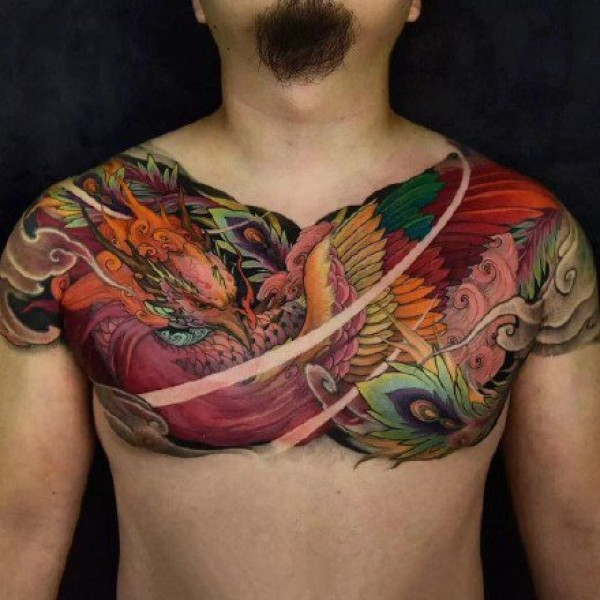 花胸纹身--一组男性霸气的大花胸纹身图案作品欣赏