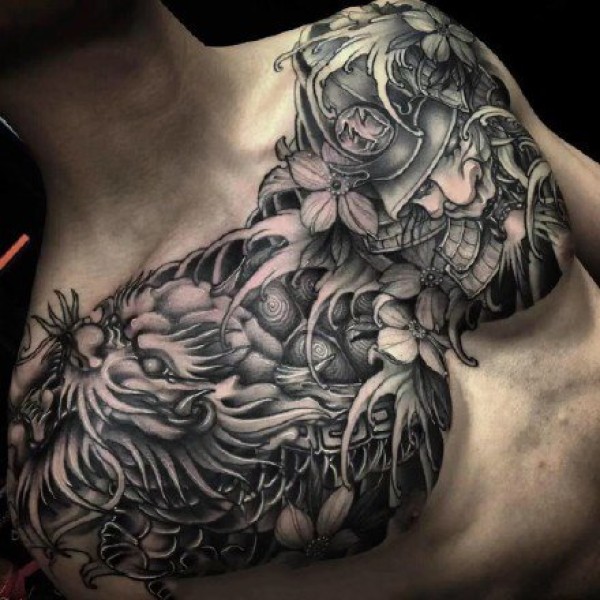 花胸纹身--一组男性霸气的大花胸纹身图案作品欣赏