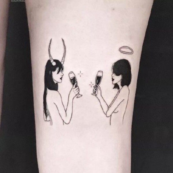 双子座纹身 适合双子座的两个女郎纹身图案