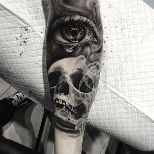 纹身眼睛纹身图案 男性手臂上穿透灵魂的黑色素描纹身眼睛纹身图案