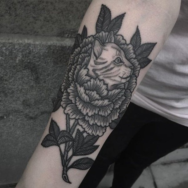 手背猫纹身:9张大花手背的猫纹身图案赏析