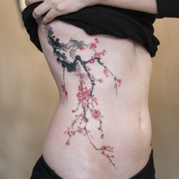 梅花纹身图案 10款彩绘纹身枯树枝的梅花纹身图案