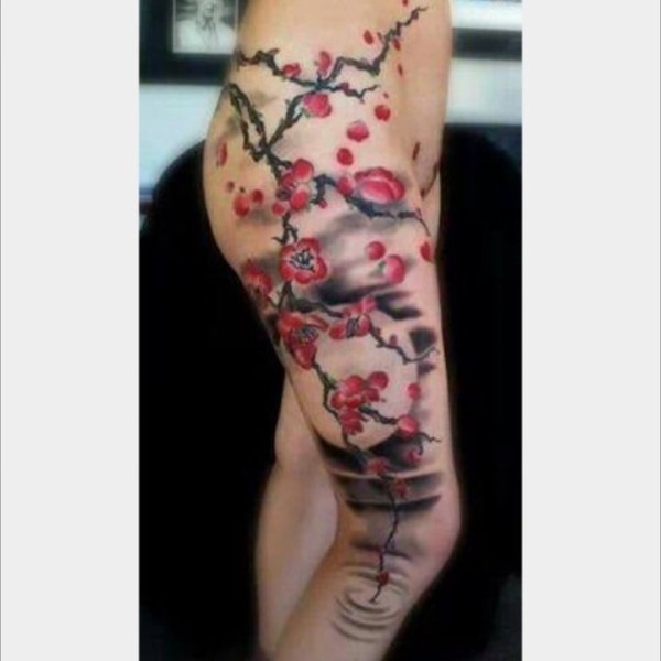 梅花纹身图案 10款彩绘纹身枯树枝的梅花纹身图案