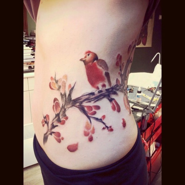 梅花纹身图案 10款彩绘纹身枯树枝的梅花纹身图案