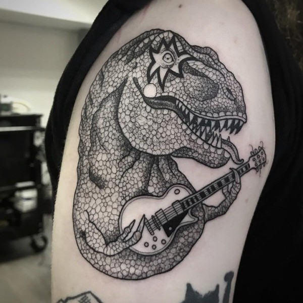 德国恐龙纹身 女生大腿上德国恐龙纹身图片