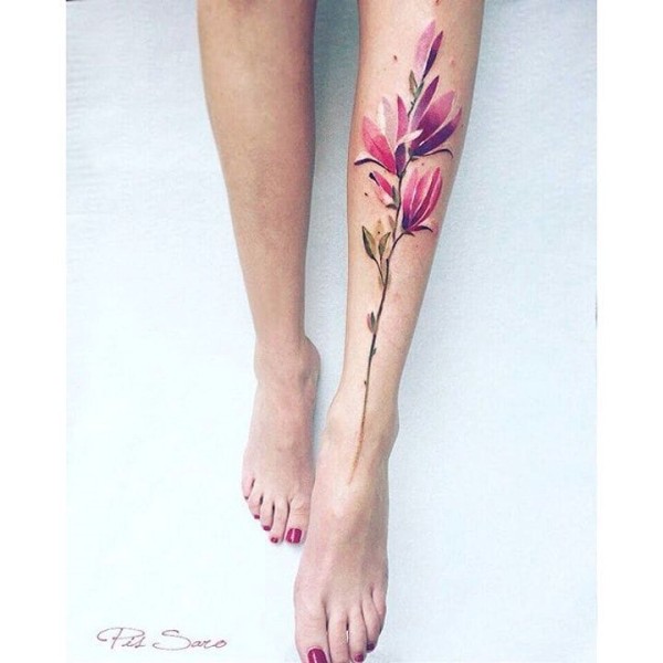 清新花朵腿部纹身图案图片_植物纹身图案大全_纹身图吧