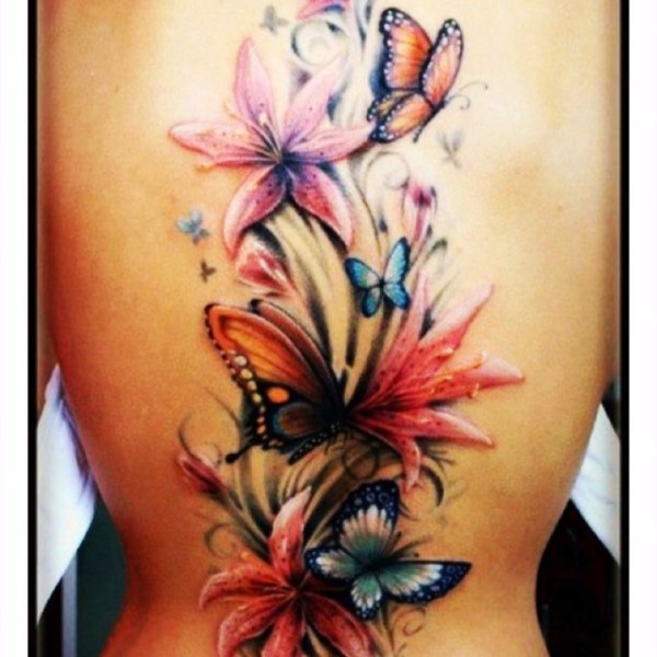 蝴蝶纹身图案 10款多彩多姿的彩绘纹身花朵和蝴蝶纹身图案
