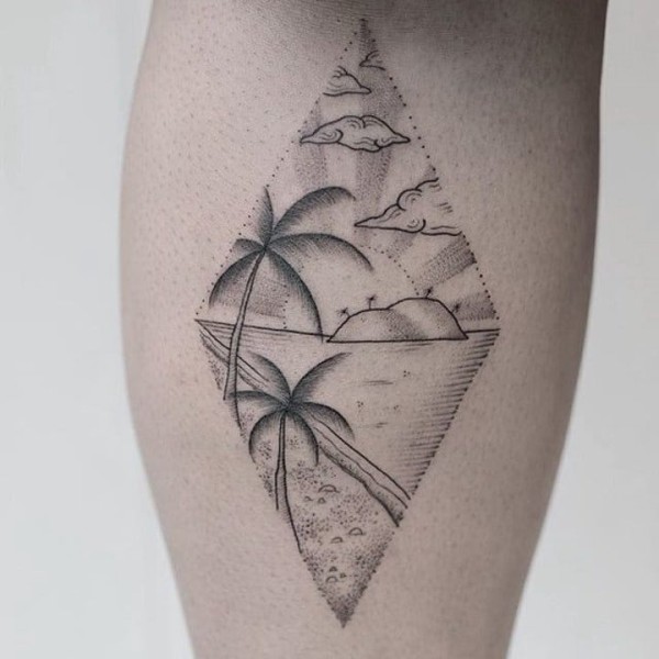 椰树纹身图案 多款小清新文艺纹身素描椰树纹身图案
