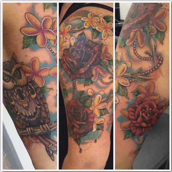 鹰纹身--一组彩色的猫头鹰等鹰纹身作品欣赏