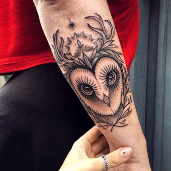 纹身猫头鹰图片 羽毛蓬松柔软的猫头鹰纹身图案