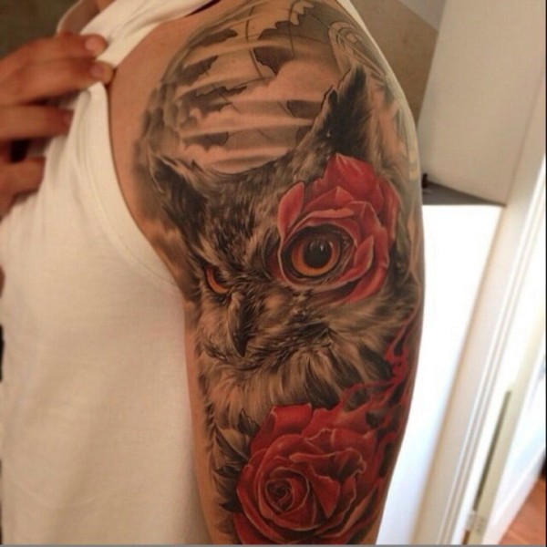 鹰纹身--一组彩色的猫头鹰等鹰纹身作品欣赏