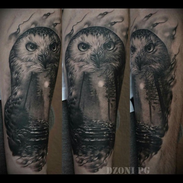 鹰纹身--一组彩色的猫头鹰等鹰纹身作品欣赏