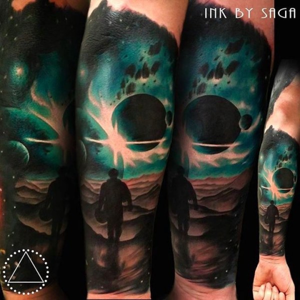 宇航员纹身图案--9张彩色宇航员星空星球宇宙纹身作品