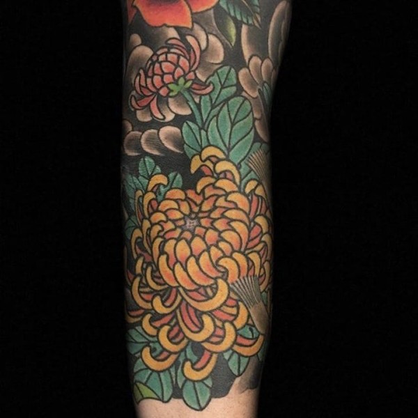 菊花纹身--9张漂亮的传统菊花纹身作品图案