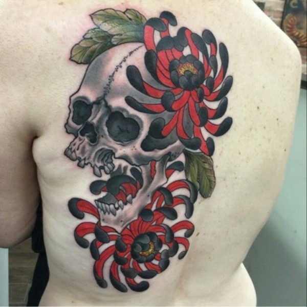 日式背部菊花般若纹身图