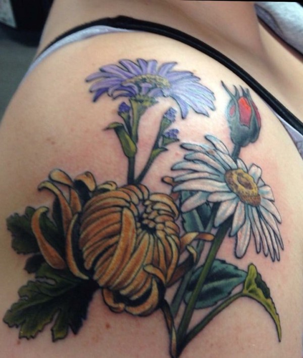菊花纹身图案 多款彩绘纹身植物的菊花纹身图案