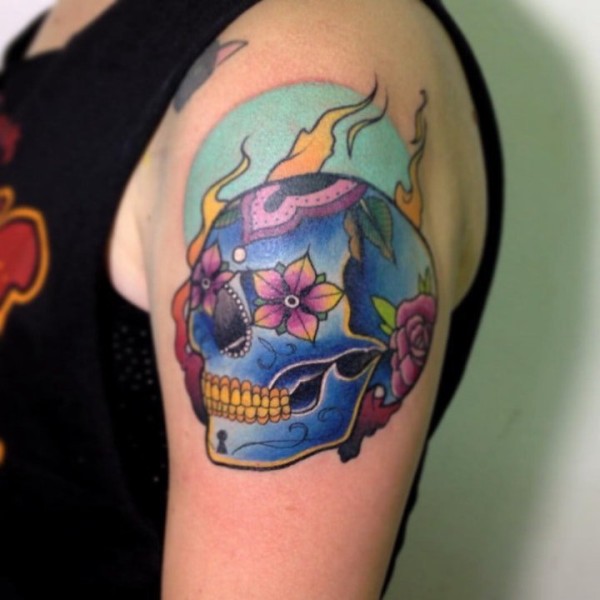 骷髅头纹身 多款风格迥异创意十足的骷髅头纹身图案